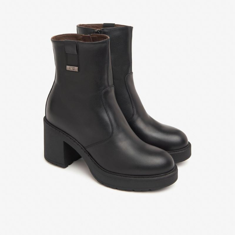The 8 cm wide heel ensures momentum and stability, while the convenient side zip makes it easy to put on. The minimalist upper is embellished with a small, discreet and luminous metal plaque with the NG logo. The rubber sole with non-slip grip ensures a safe and comfortable walk.