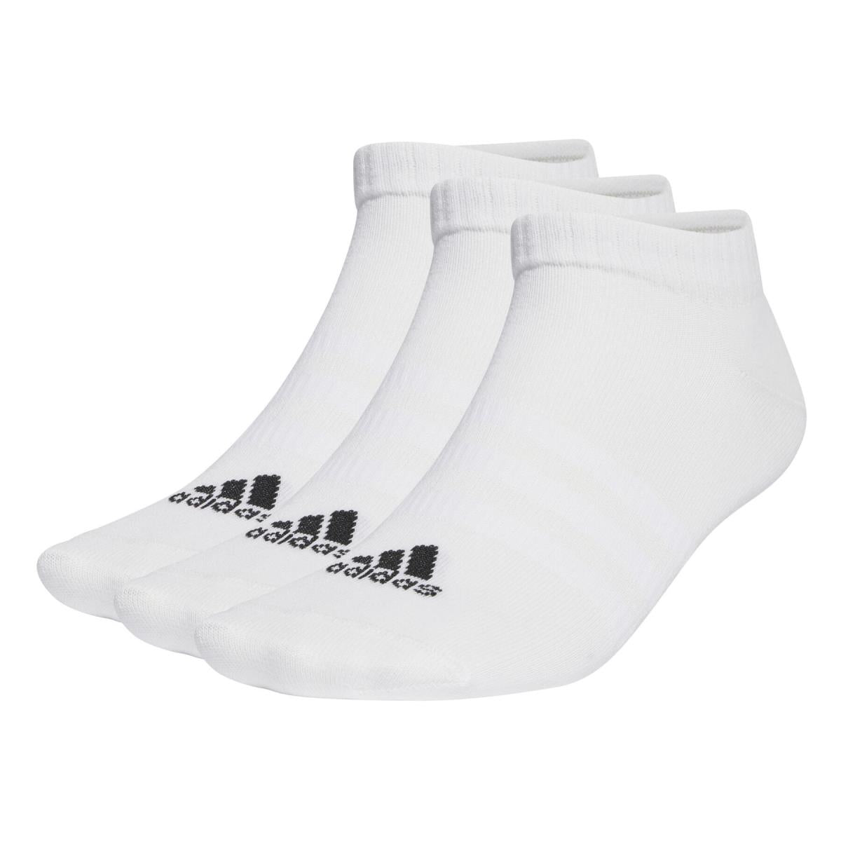 Adidas Sportswear Low-Cut Socks are thin and lightweight. These Adidas socks are made from a lightweight cotton and polyester blend, featuring ribbed cuffs and a low-cut design. They offer a snug fit around the arch and a linked toe to reduce chafing. Three-pair pack. Salbini sporting goods is an Adidas retailer.