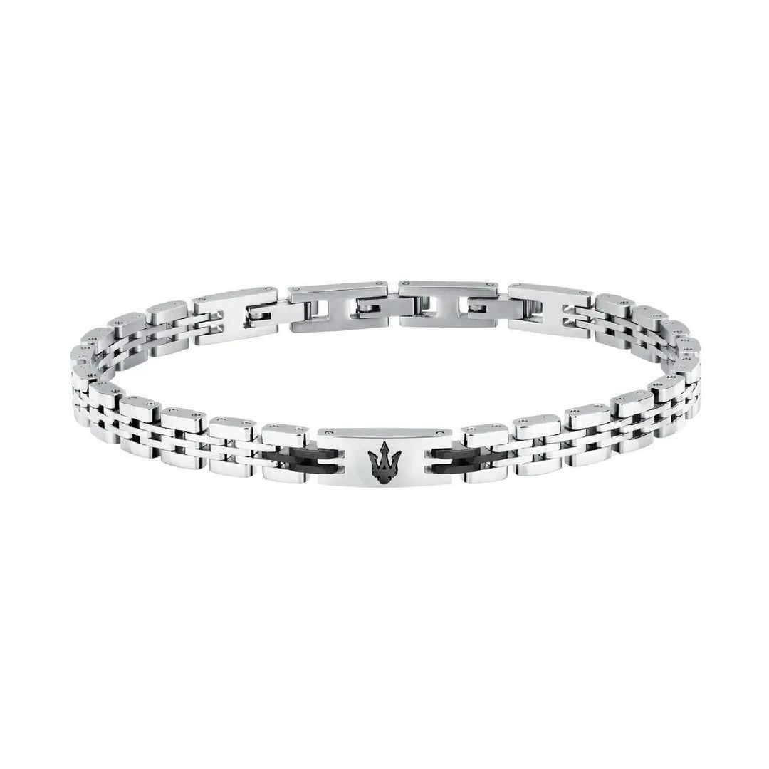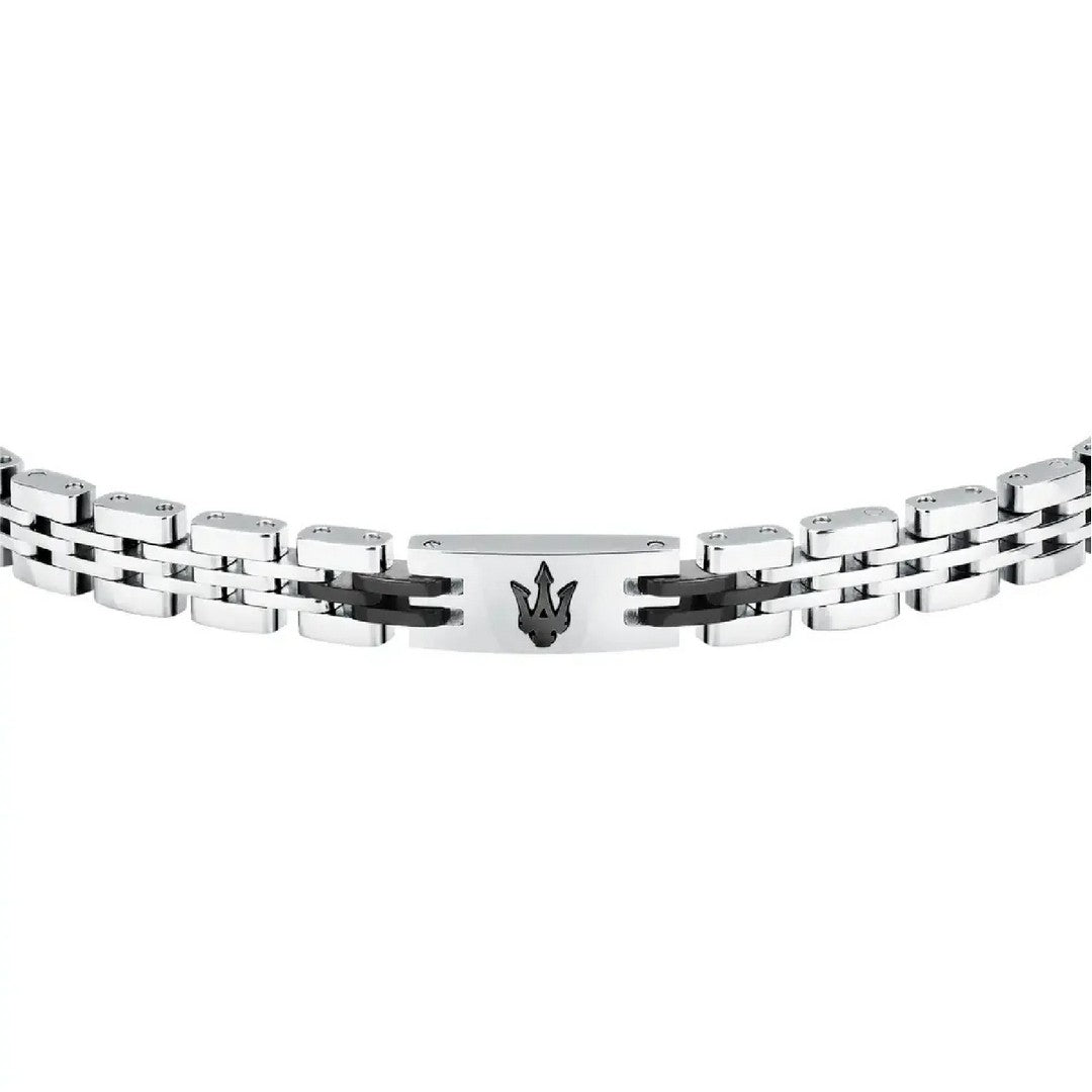 Chain bracelet from the Maserati collection for men. Color: silver and black. The jewel is in 316L stainless steel with black pvd treatment on the brand logo positioned on the central plate.