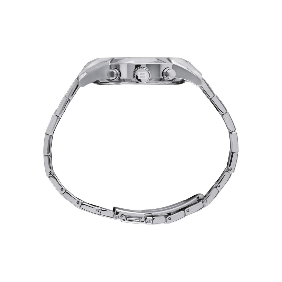 The men's Bridge chronograph is an extremely sporty watch with a distinctive Breil design. It features a large case, a beautifully sculpted polished/satin-finished steel bracelet, and a silver dial with blue accents, rich in details that accentuate its character.