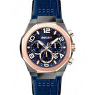 Orologio Ducati Corse by Locman cronografo con cassa da 43,5mm in acciaio e lunetta ottagonale dorata rosa, quadrante blu con logo Ducati e finiture oro rosa, cinturino in pelle blu e interno in silicone. cod DTWGC0001104