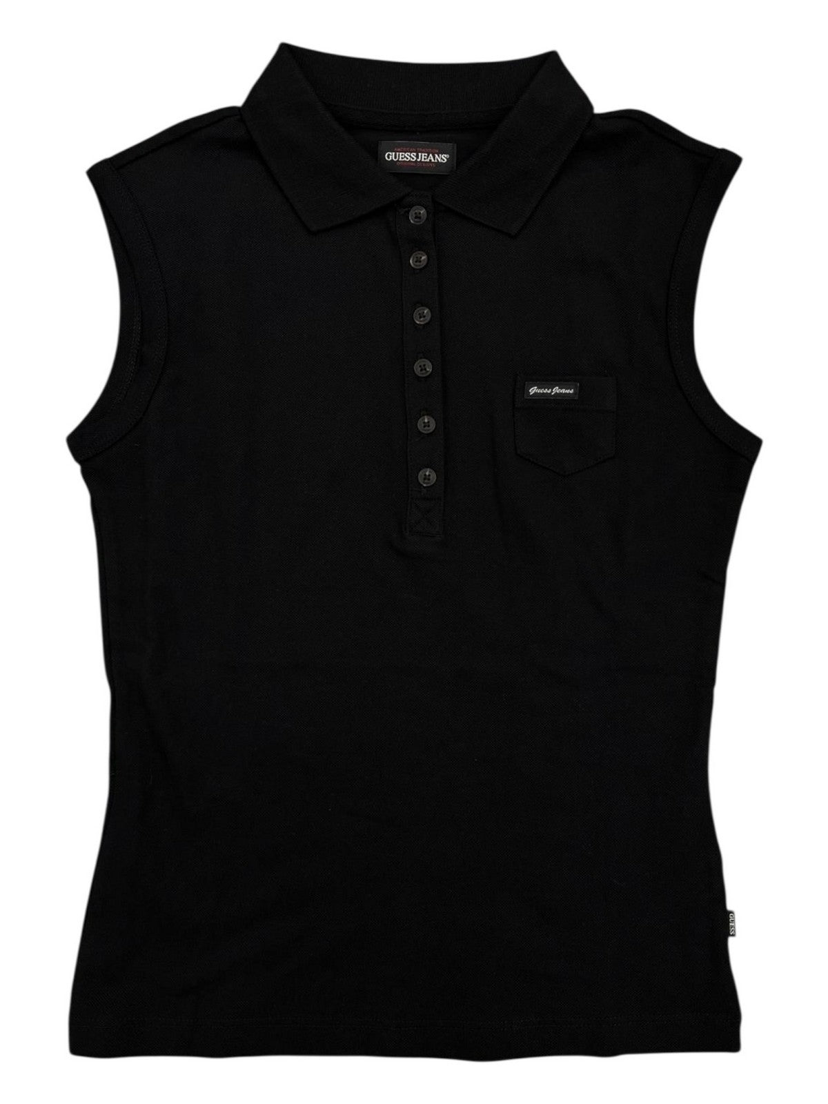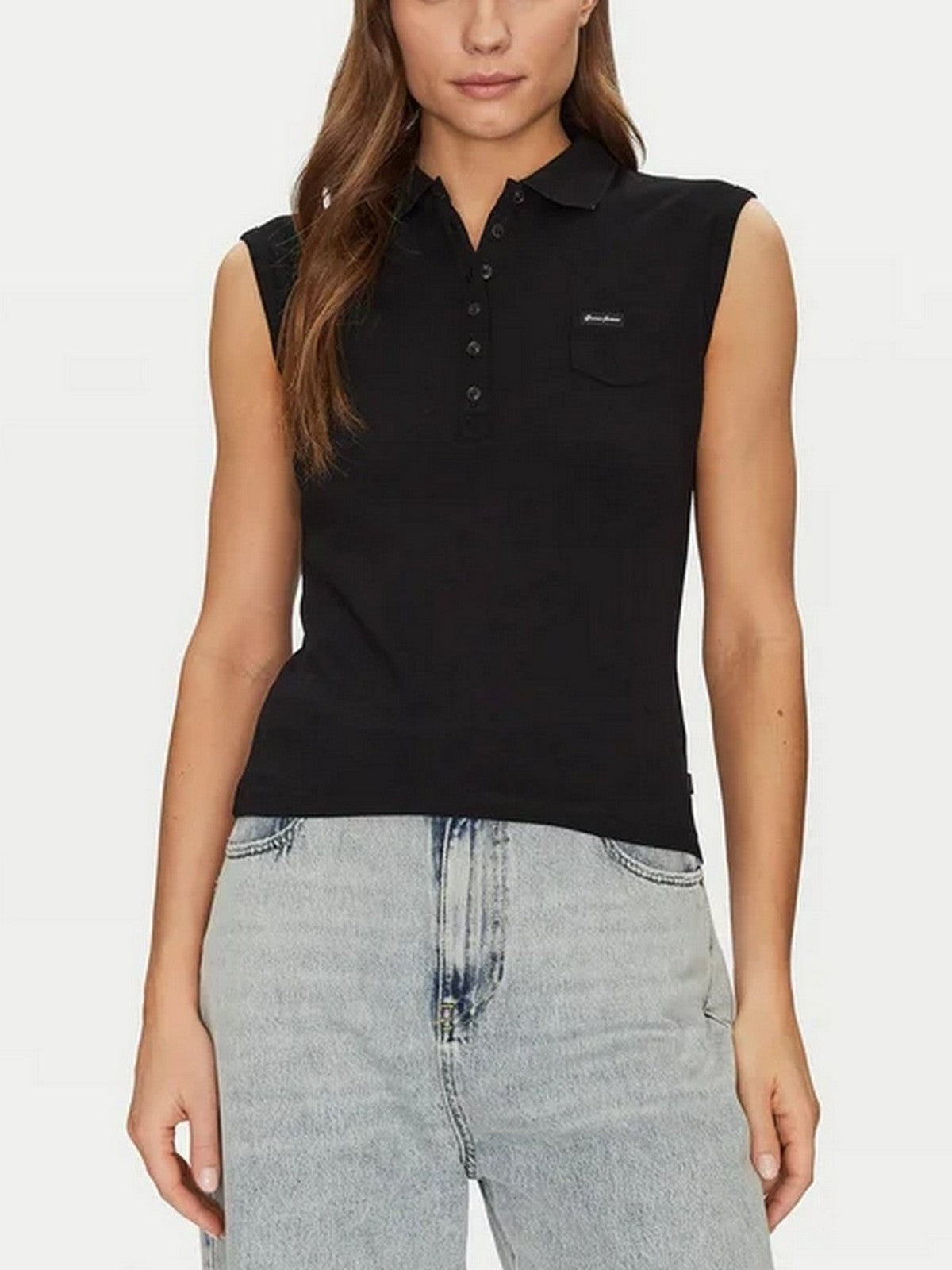 GUESS Women's T-shirt GJ SLEEVELESS COLLAR SLIM PKT W5GP24 KCYR1 JBLK Jet Black A996