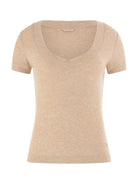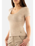 GUESS Women's T-shirt TINA SS V NECK RIBS TOP W5RP17 KCNH2 A90F CEMENT