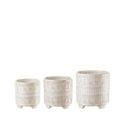 Set of 3 ceramic Cache-pots with antique effect and geometric decoration. The different sizes allow you to create a green corner or embellish an environment with a harmonious plant decor.