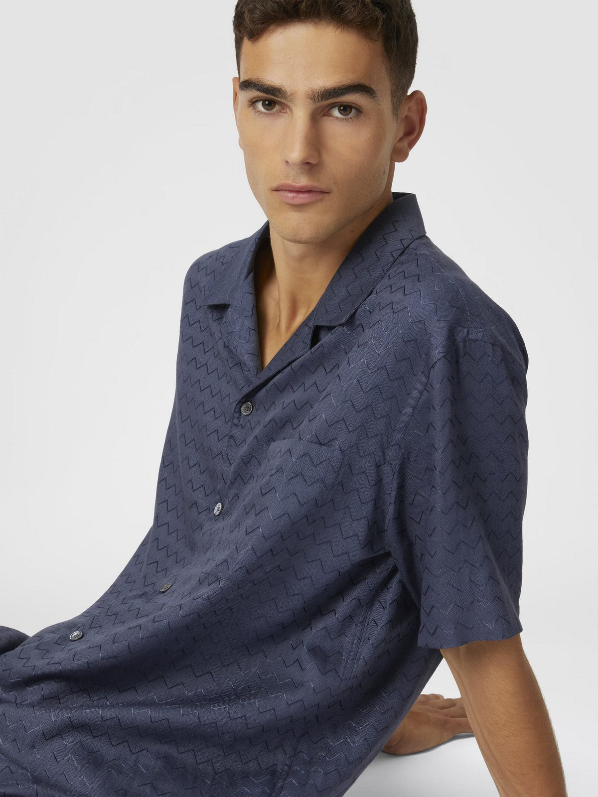 This Missoni shirt combines the elegance of tailored construction with the lightness of premium materials. The cotton, viscose, and linen blend, embellished with a zigzag pattern, lends the piece a contemporary sophistication, perfect for a fresh yet sophisticated summer look.
