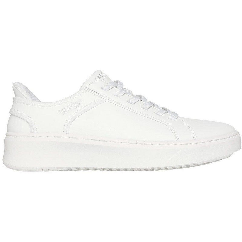 Elevate your look with a modern classic in the Skechers Hands Free Slip-ins®: Court Break - Double Vented. Featuring our signature Heel Pillow™ design, this tennis-style sneaker features a technical upper with a Skechers Slip-ins® molded heel panel for hands-free wear, elastic laces, and a cushioned Skechers Air-Cooled Memory Foam® insole.