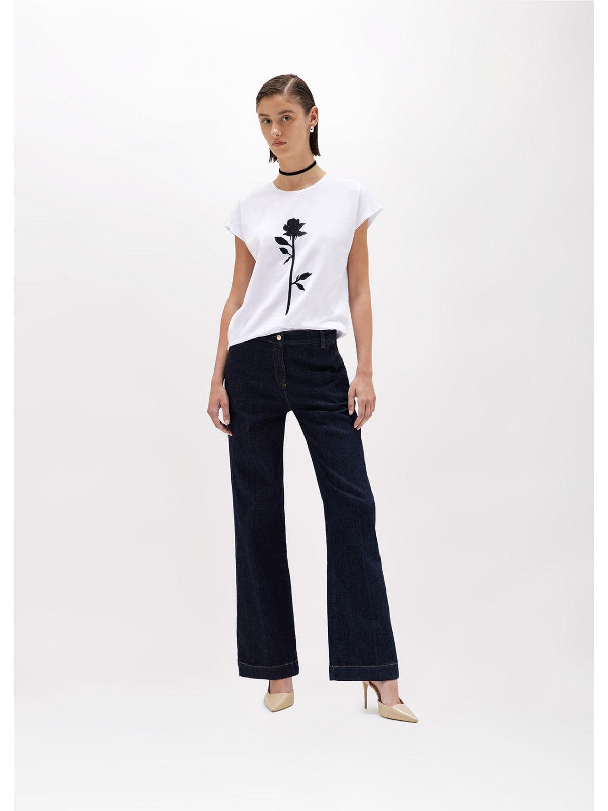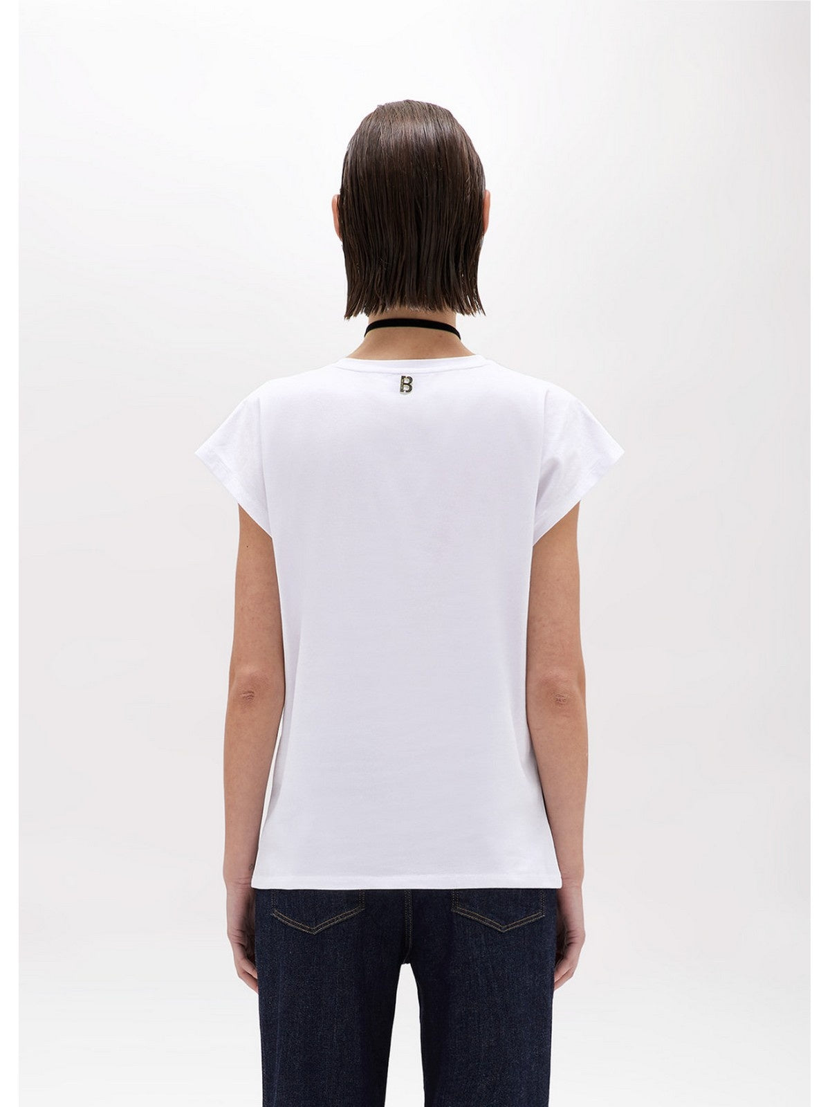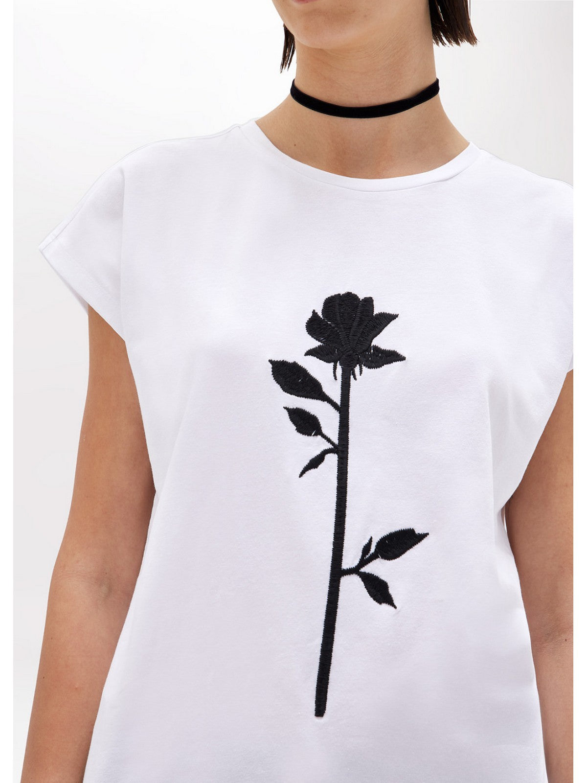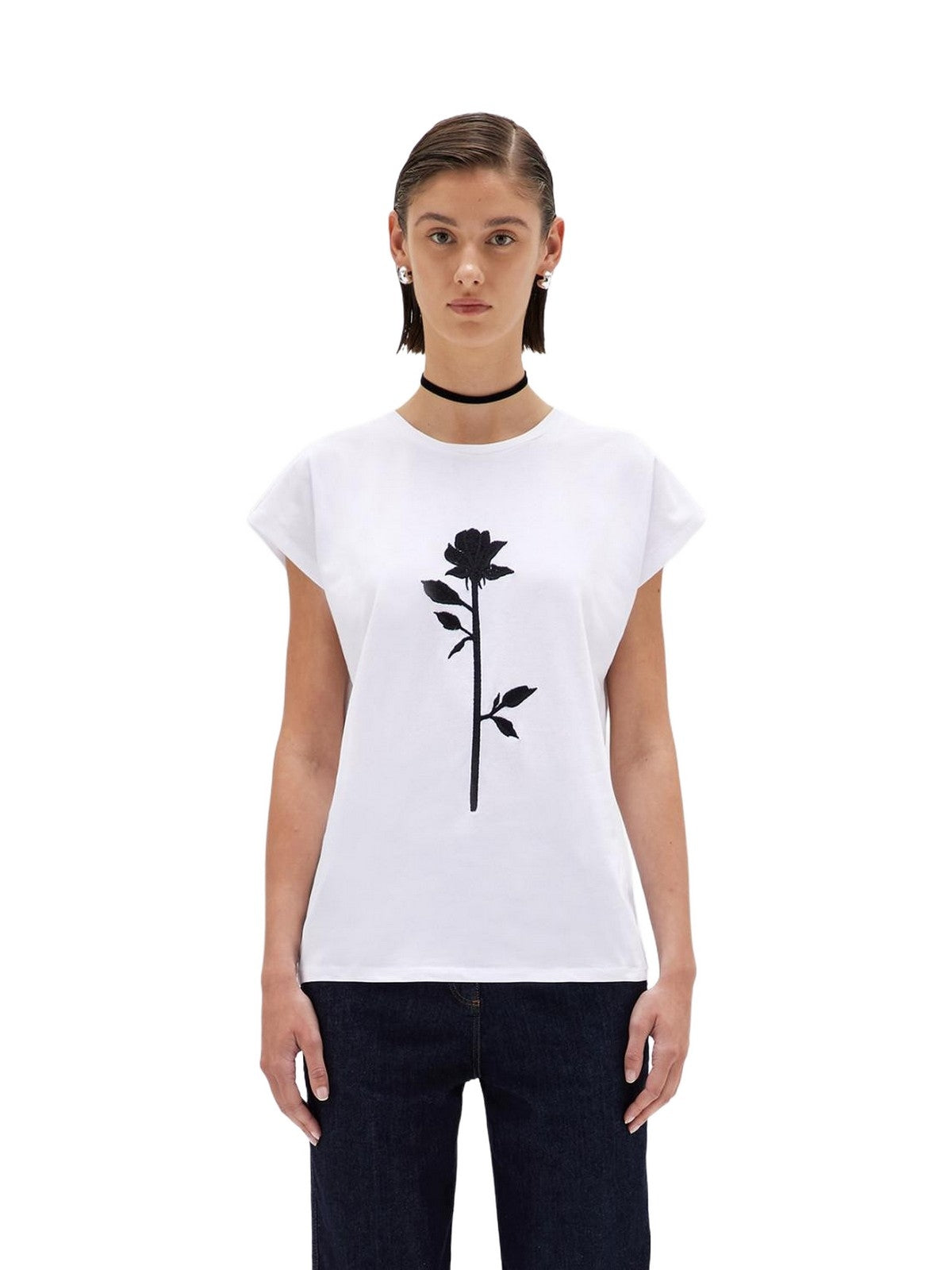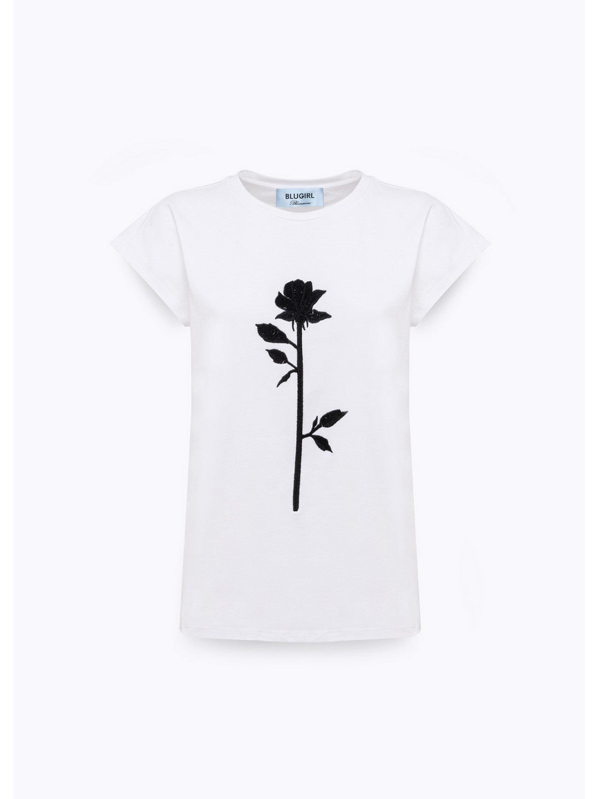 THE BLUGIRL ROSE IS THE STAR OF THIS STRETCH COTTON JERSEY T-SHIRT WITH A ROUND NECK, SHORT SLEEVES AND DROPPED SHOULDERS. IT FEATURES A CONTRASTING THREAD EMBROIDERY. COMPOSITION: 95% COTTON 5% ELASTANE