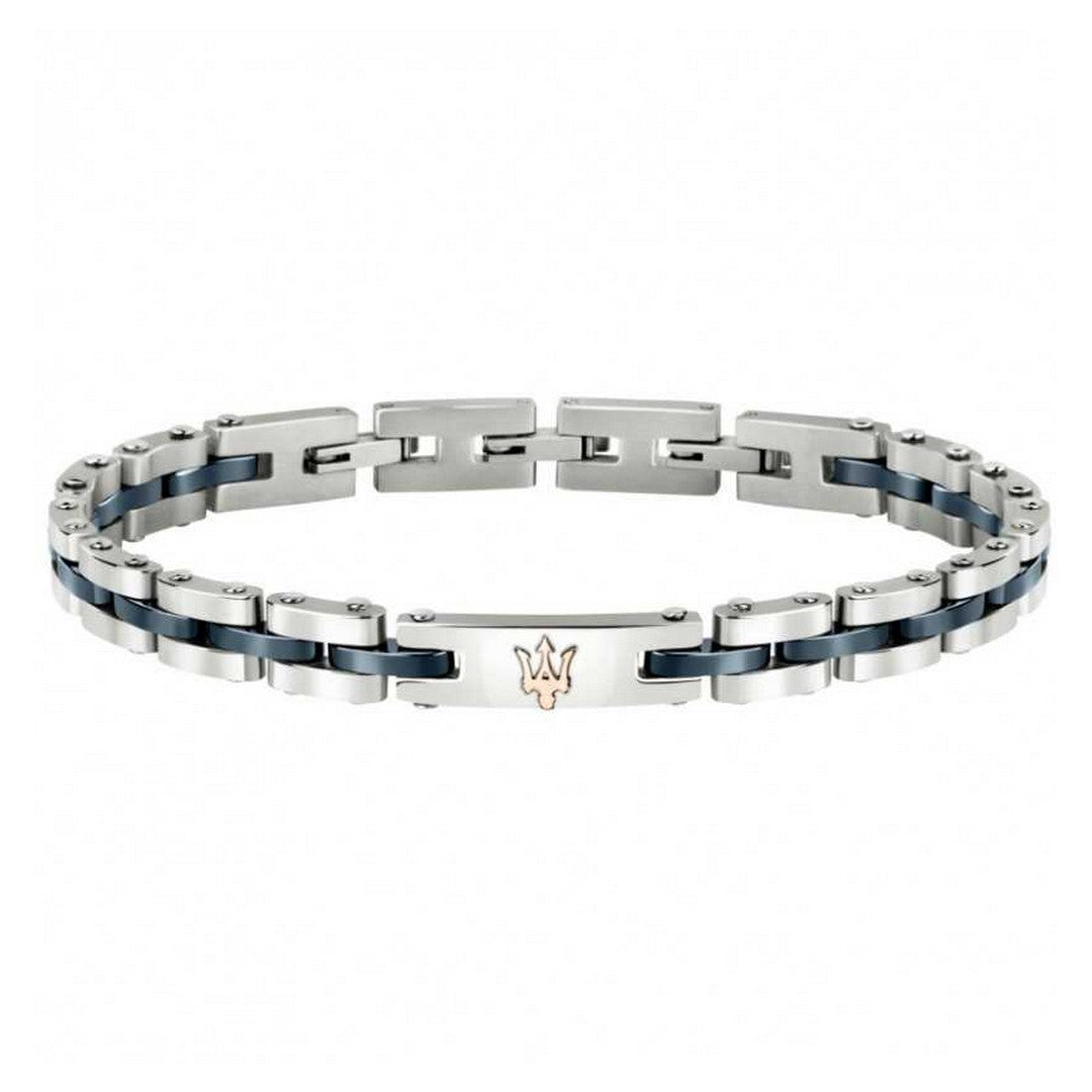 Maserati men's bracelet made of hypoallergenic steel with blue ceramic inserts.