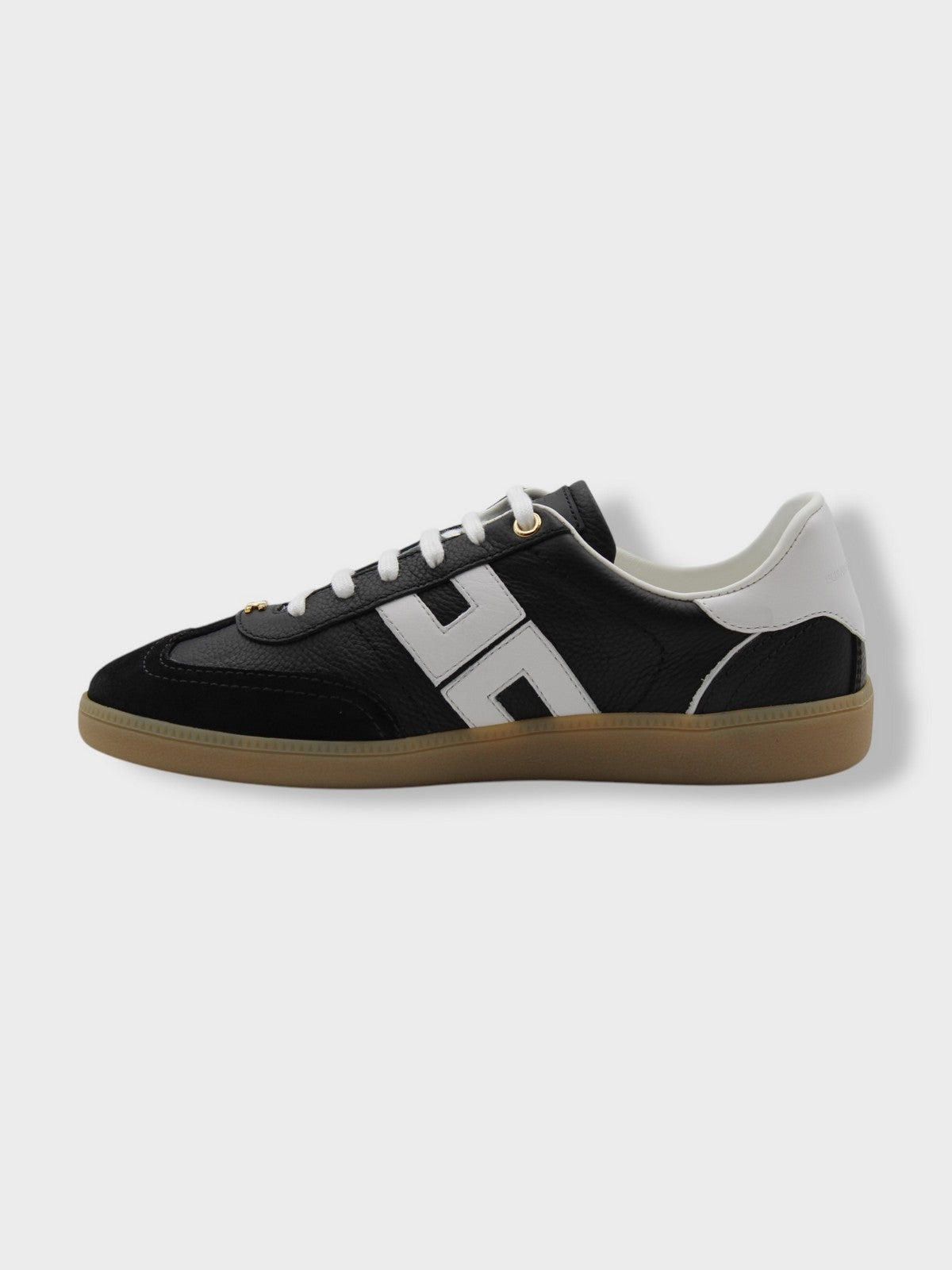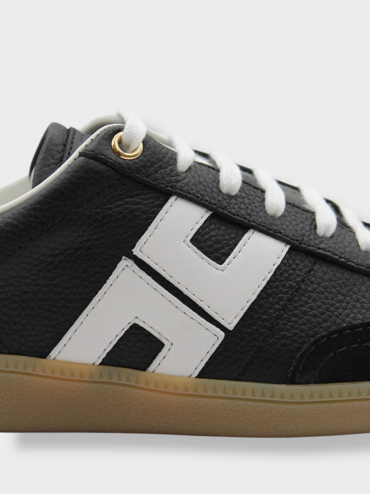 The strong point of this sneaker is the contrasting logo, strategically placed on the side, which gives a touch of visibility and boldness without compromising its elegance. The choice of the logo, made in a lighter color than the black base, creates an interesting and captivating visual effect.