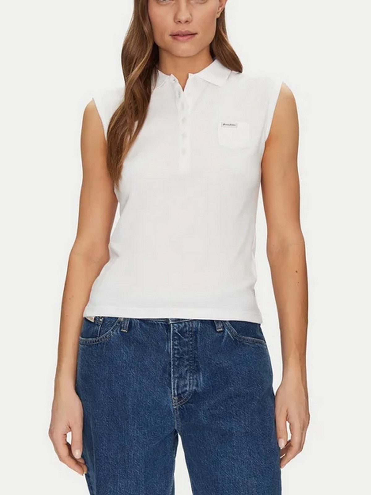 GUESS Women's T-shirt GJ SLEEVELESS COLLAR SLIM PKT W5GP24 KCYR1 G011 PURE WHITE