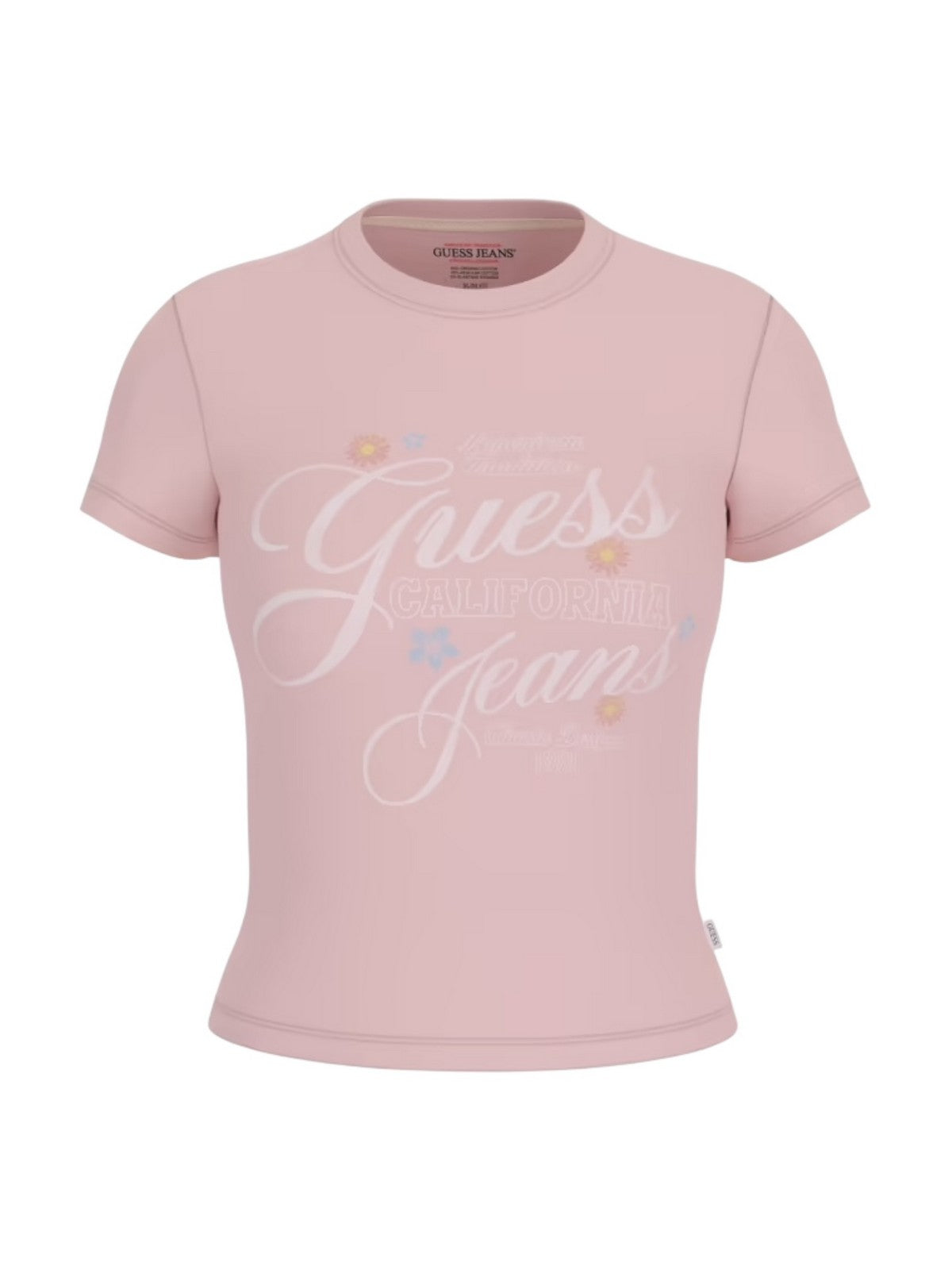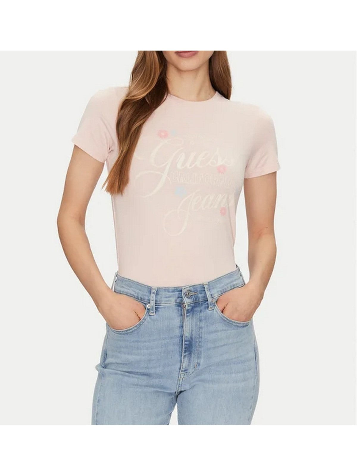 GUESS Women's T-shirt GJ SS SLIM FLOWER TEE W5GI24 J1314 G6R4 BLUSH COTTON