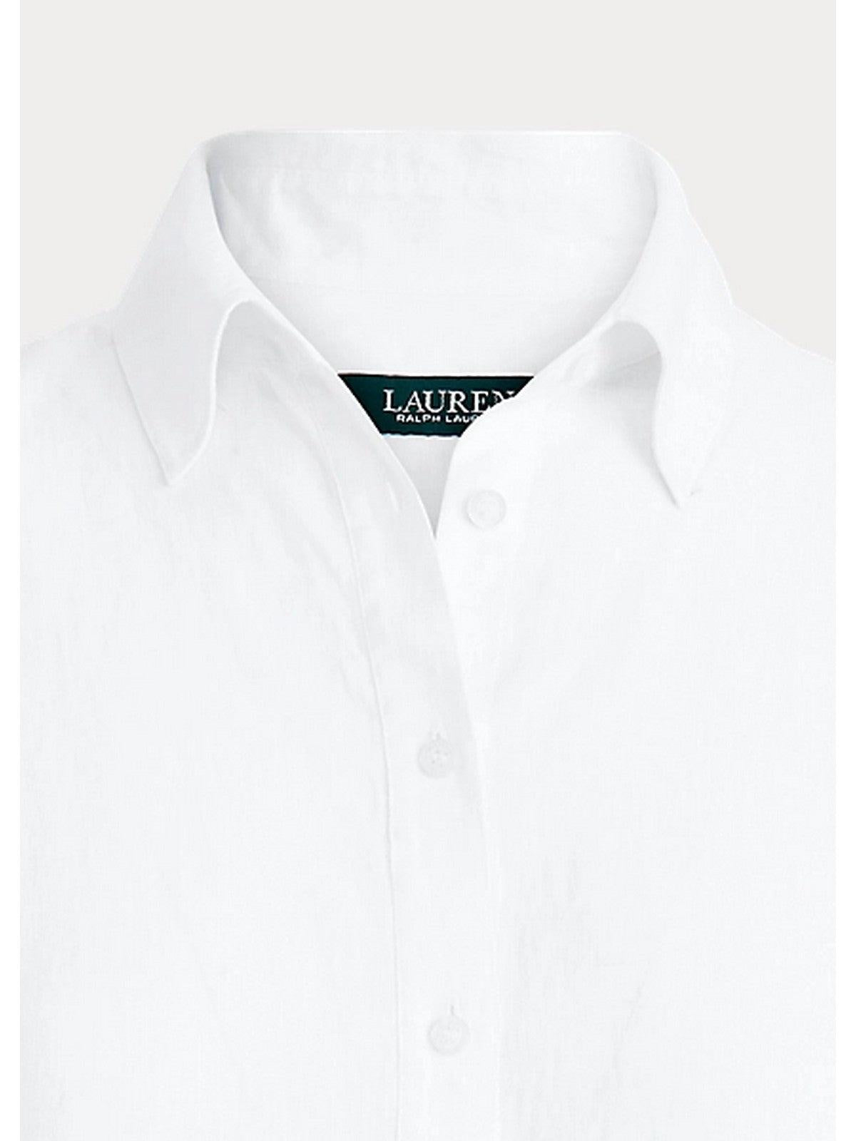 LAUEREN RALPH LAUEREN linen shirt. With short kimono sleeves and rolled cuffs. Pointed collar. Button placket at the center front. Back yoke with box pleats. Asymmetric hem. Relaxed, comfortable fit. Hip-length.