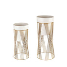 Set of two metal cachepots with a white vase and gold frame. An ideal furnishing accessory for a green living area and sophisticated studios.