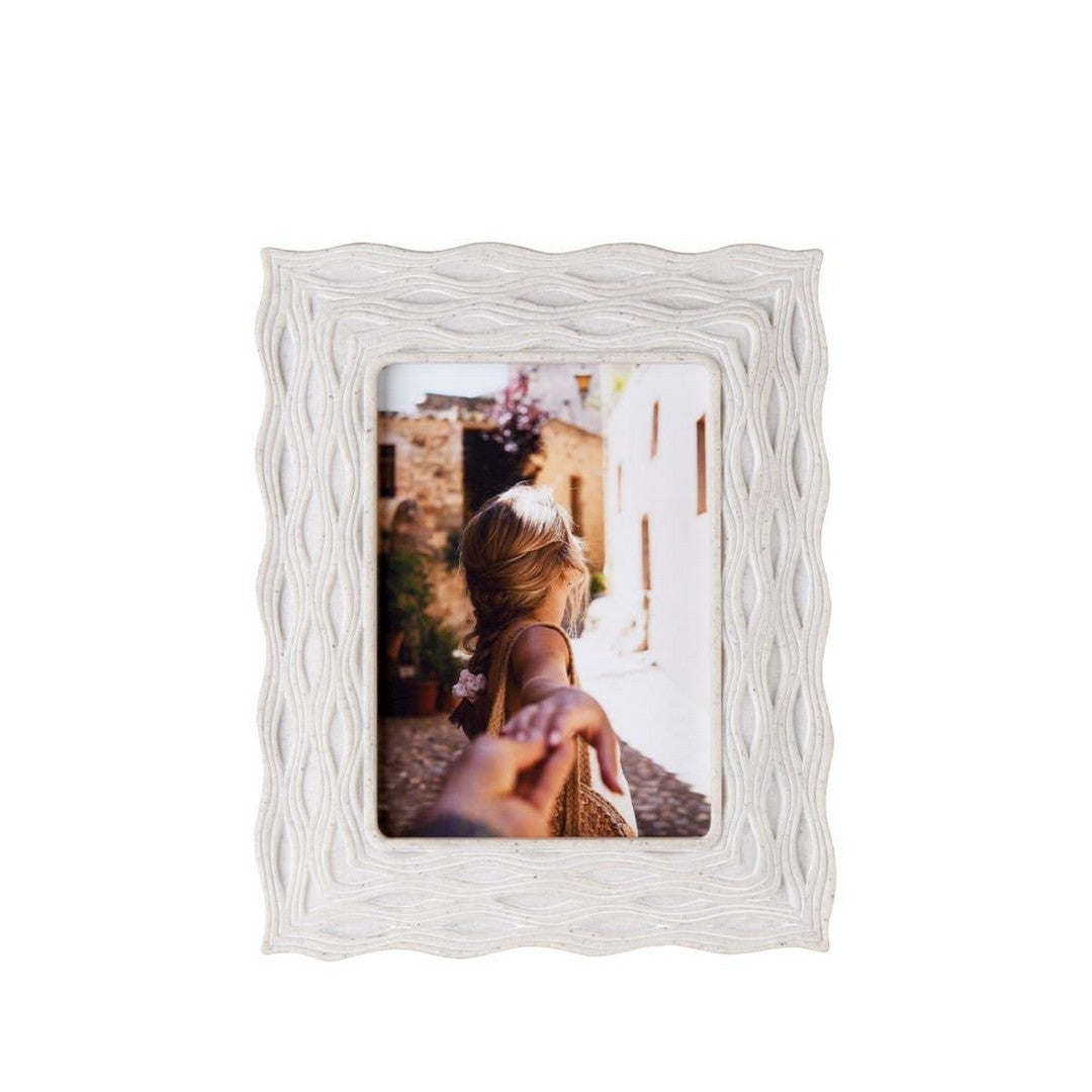 Portafoto rettangolare in resina. Pattern materico e linee classiche che vestono di stile ogni ricordo. Perfetto per chi ama un design iconico. Disponibile anche versione piccola.