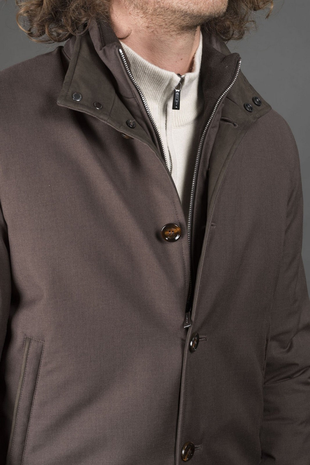 Realizzato in tessuto tecnico antistropiccio, dall'aspetto e dalla mano simile alla flanella, funzionale, impermeabile e antivento.