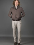 Il modello è alto 189 cm e indossa una taglia MooRER IT 50 .