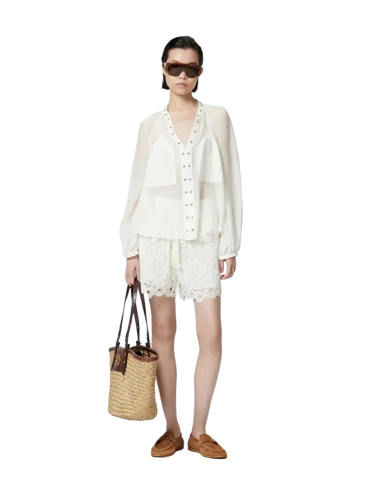 Pinko Women's Shorts - Perforated Macramé Shorts - White