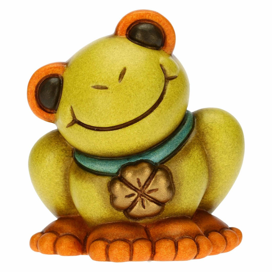 Aggiungi alla tua collezione di animali THUN la nuova simpatica rana, impreziosito da una collona con quadrifoglio portafortuna! La sua dolcezza inonderà la tua casa di allegria. Scoprili tutti, sono creazioni in ceramica dipinta a mano ideali da regalare e collezionare.
