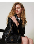 TWINSET 'Madison' shoulder bag made in Italy in full-grain calfskin with quilted effect embroidery stitching, without padding