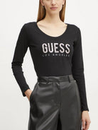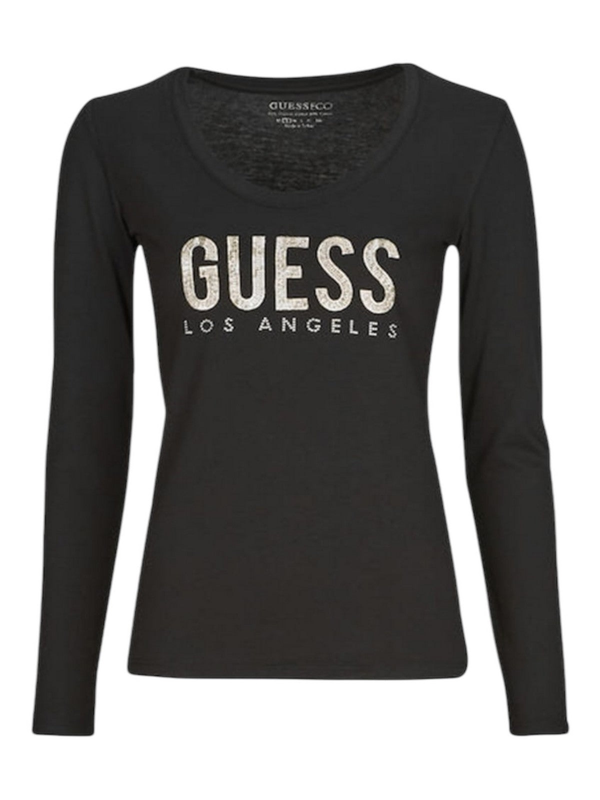 GUESS Women's T-shirt LS CN PYTHON LOGO TEE W5RI66 I3Z14 JBLK Black