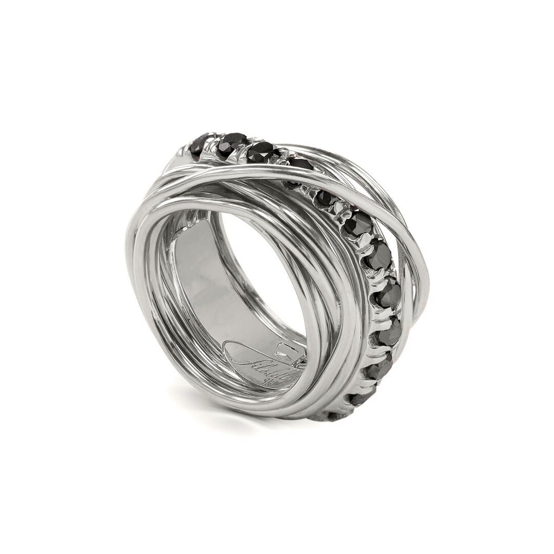 Filodellavita Carato Collection Ring, 13 Strands in .950 Palladium Silver and 13 Black Diamonds 1.00 ct total.