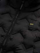 Piumino BLAUER con cappuccio fisso e profilo dall'aspetto aderente e increspato. Cuciture nastrate ad angoli che dona un tocco innovativo e dinamico.