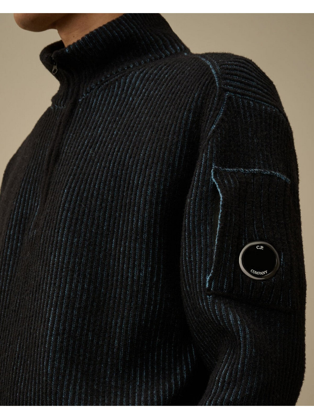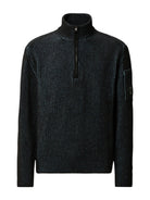 Maglione C.P. COMPANY realizzato in lana vanisé con ciniglia di poliestere a contrasto. Il modello presenta colletto a coste e l'iconica Lente di C.P. Company. Finezza 7. Regular fit.
