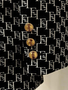 ELISABETTA FRANCHI 弹力绉纱夹克,饰有徽标印花。 单排扣闭合,配有金色金属纽扣。前袋带盖。 披肩翻领和交织字母缎面衬里。