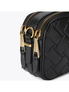 KURT GEIGER Mini Kensington bag made of black leather with padded parquet-effect stitching.