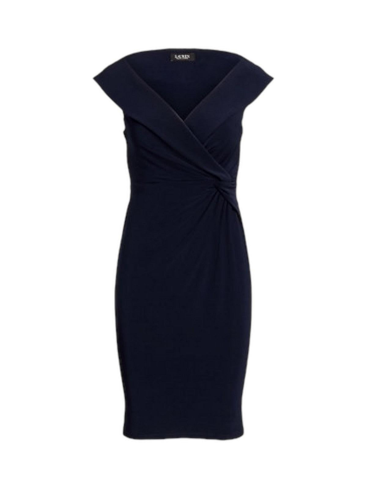 LAUREN RALPH LAUREN dress made of smooth and tight jersey. Crossover neckline on the front with spiral on the side and neckline on the shoulders with folded neck. Sleeveless. Zip closure.