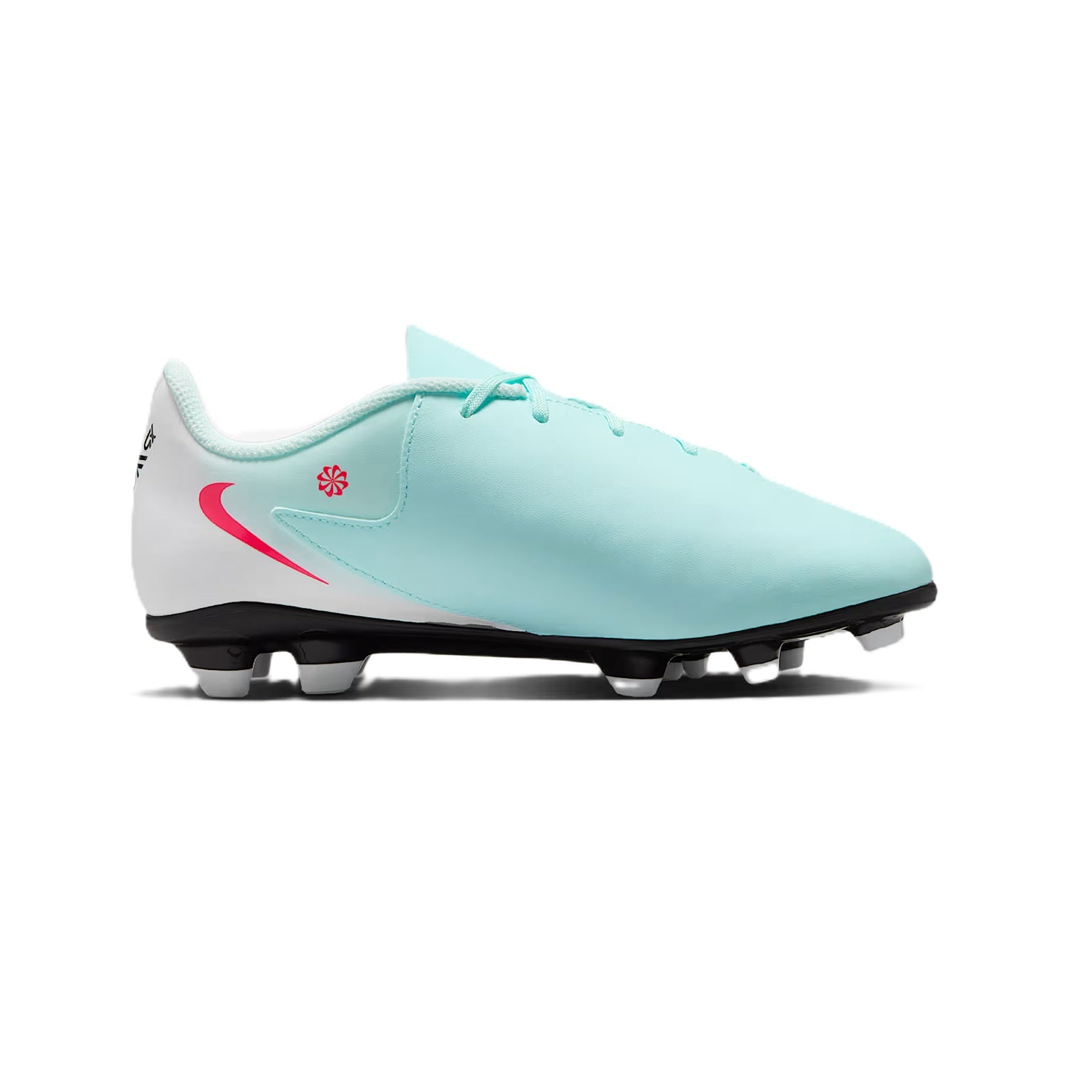Nike Phantom GX II Club FG-MG soccer cleats for kids. Built with goals in mind, the Jr Phantom GX 2 Club features a grippy texture that covers the striking surface of the boot and offers reliable traction to guide your agility. Precise touch, the grippy texture covers the striking surface of the boot, extending from the side of the big toe through the laces to the little toe, allowing for a clean touch with improved ball feel. A snug fit, the synthetic leather upper offers consistent comfort on the pitch. Classic laces, ideal for natural and synthetic surfaces, cushioned insole. Salbini technical sports articles is a Nike retailer.