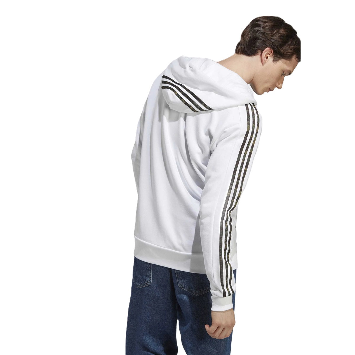 Adidas Felpa M 3S FT FZ HD Bianco/Mimetico Militare