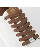 Punta arrotondata. Chiusura con lacci in cotone con placchetta in metallo.