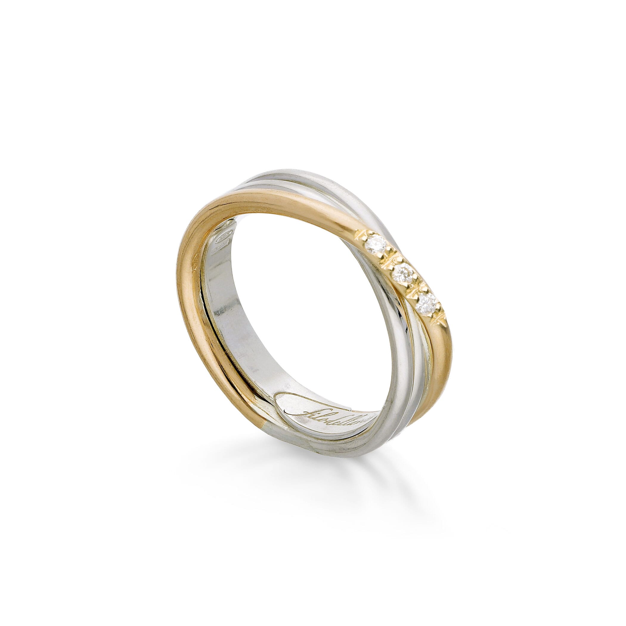 Anello Filodellavita Classic Collection, 3 Fili in Argento .925 Oro Giallo 9 kt e 3 Diamanti Bianchi 0.04 ct