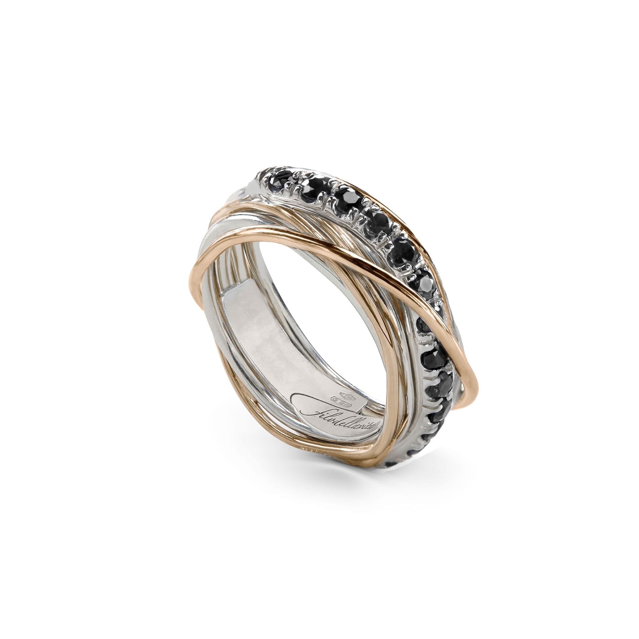 Anello Filodellavita Prezioso Collection, 7 Fili in Oro Rosa 9kt, Argento .950 al Palladio e 15 Diamanti Neri 0.80 ct tot.