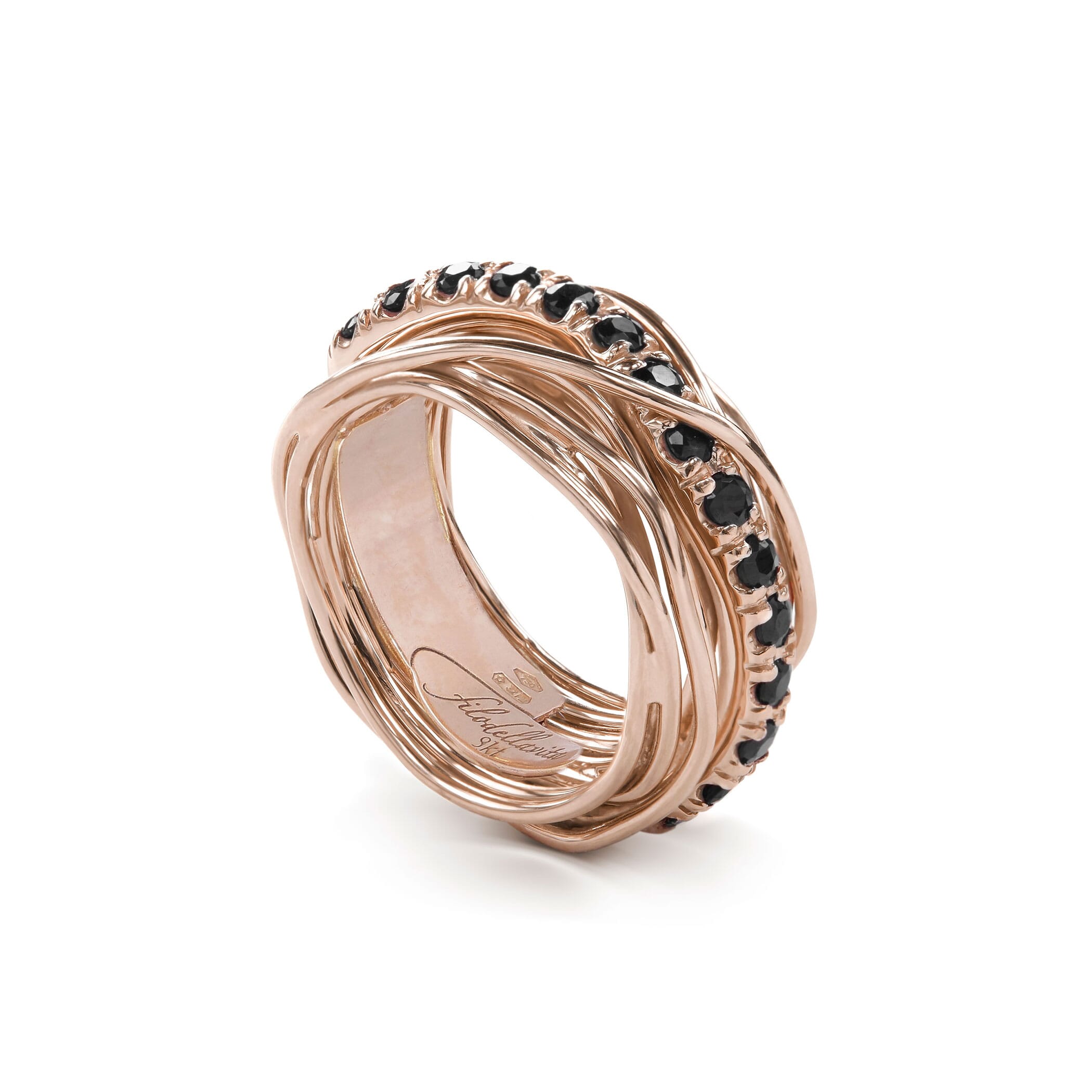 Anello Filodellavita Prezioso Collection, 13 Fili in Oro Rosa 9kt e 15 Diamanti Black 0.80 ct