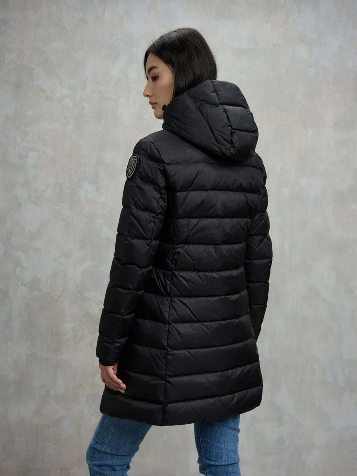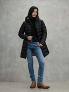 Piumino lungo donna BLAUER trapuntato a righe orizzontali ed interno in contrasto colore.