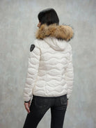 Piumino BLAUER idrorepellente trapuntato ad onde orizzontali e con profilo del cappuccio in vera piuma.