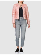 Piumino corto BLAUER girocollo con cuciture a righe orizzontali. Il giacchino è impreziosito da una fettuccia plissettata che dona al capo uno style classico e raffinato
