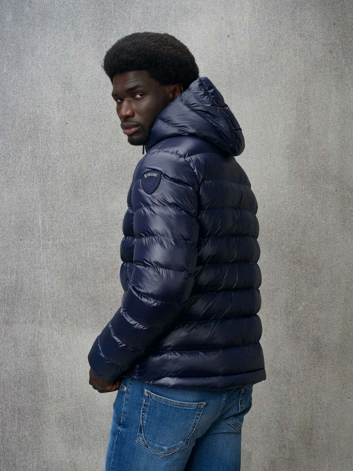 Piumino BLAUER idrorepellente in nylon micro-rip con leggero motivo check