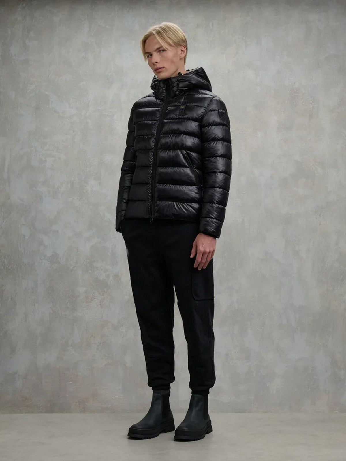 Piumino uomo BLAUER idrorepellente in nylon micro-rip con leggero motivo check.