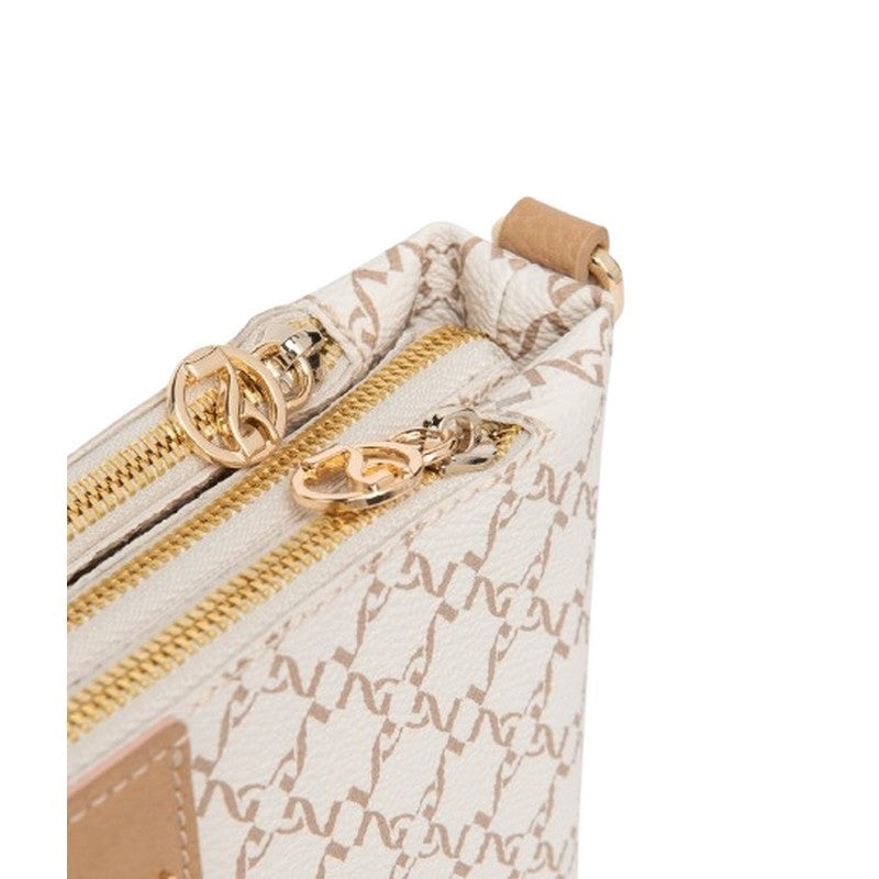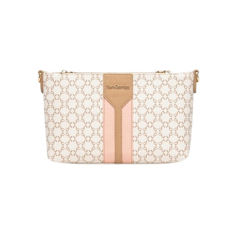 Realizzata in materiale tecnico effetto pelle con elegante stampa monogram NG tono su tono, si distingue per il look minimal e contemporaneo. Il colore beige chiaro è versatile e luminoso, impreziosito da finiture dorate e logo frontale applicato.