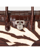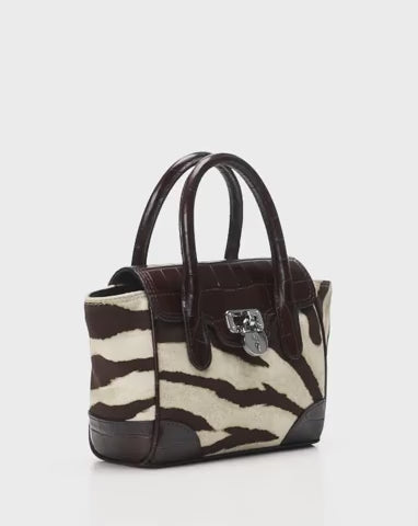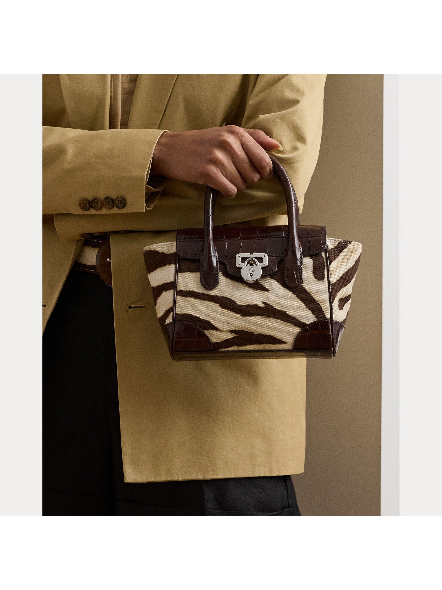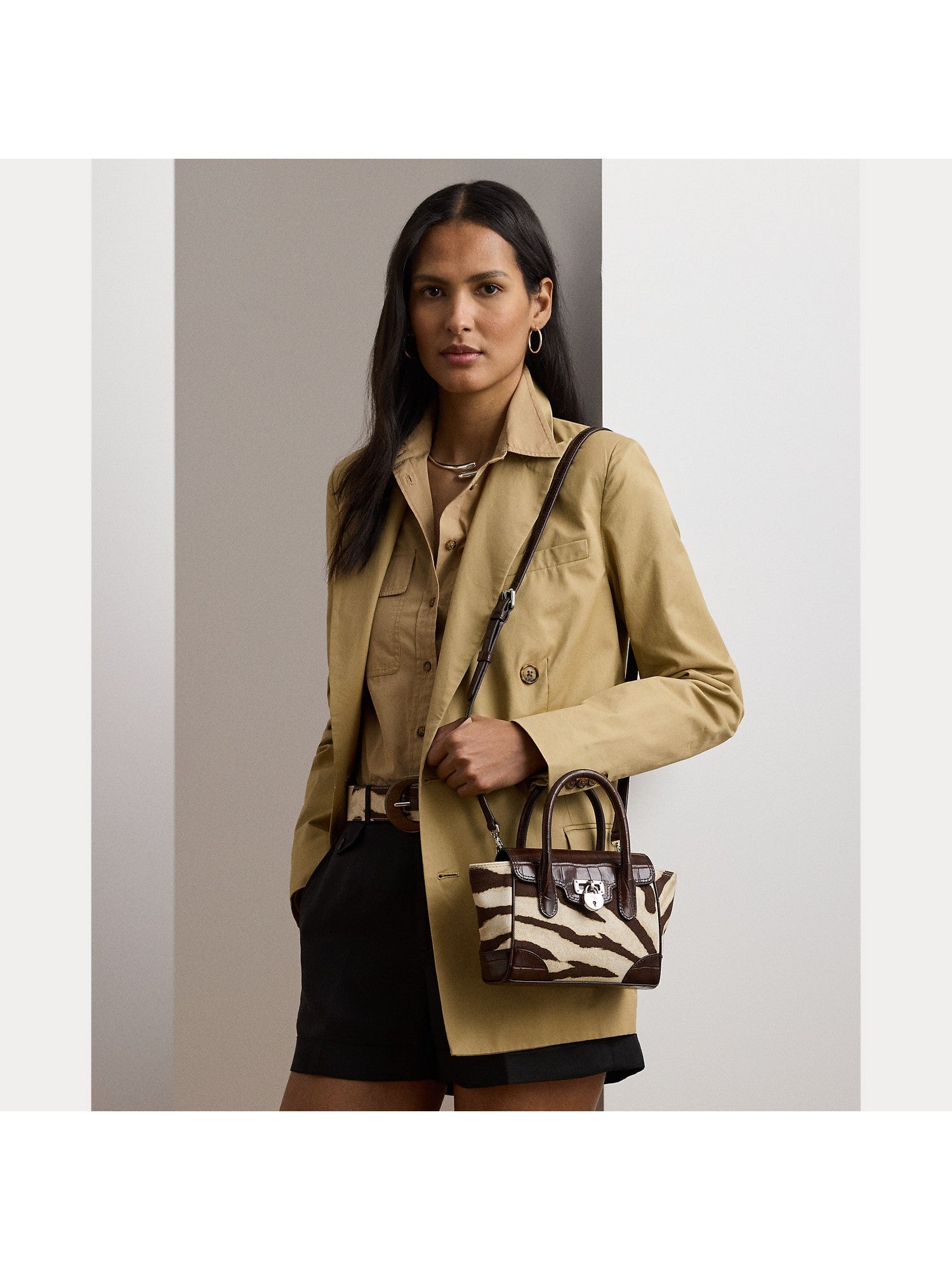 La borsa satchel Lauren Ralph Lauren 431969470001 è un accessorio di lusso che unisce eleganza e funzionalità. Parte della esclusiva collezione Tanner, si distingue per la silhouette compatta ma spaziosa e per il charm con lucchetto inciso “LRL” applicato sulla pattina. Realizzata in pelle lucida con effetto coccodrillo e canvas a stampa zebrata, offre un raffinato contrasto di texture dal carattere sofisticato.