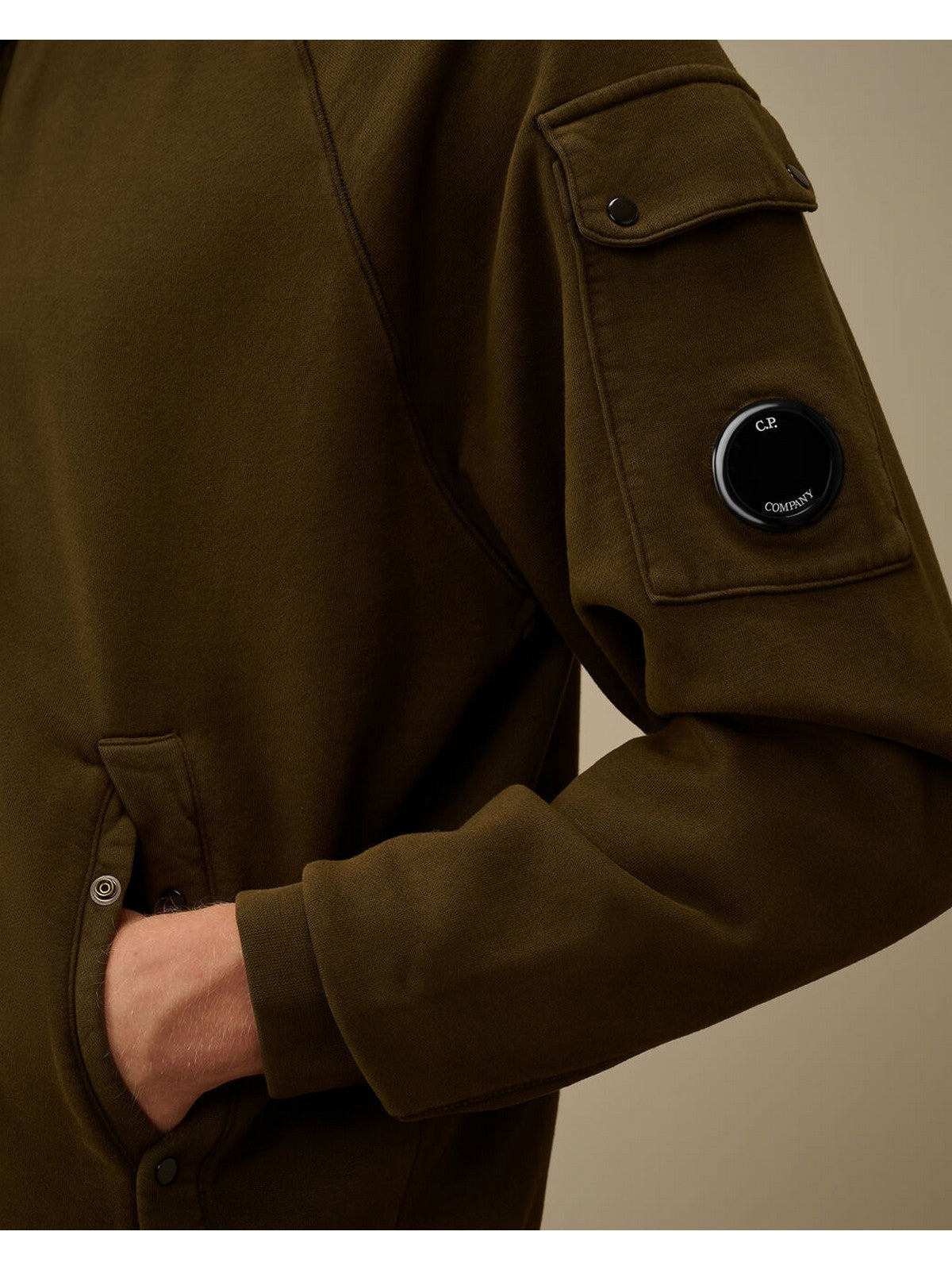Felpa bomber C.P. COMPANY zip realizzata in fleece garzato e smerigliato a trama diagonale.