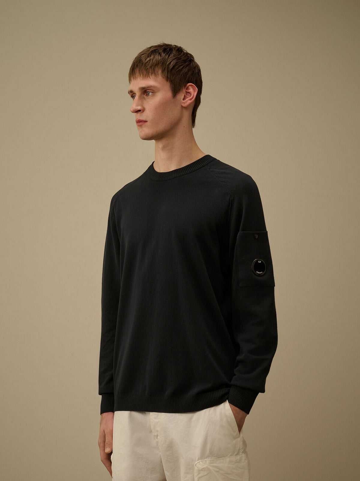 Maglione C.P. COMPANY realizzato in cotone crepe, un tessuto leggero e traspirante caratterizzato da una texture naturalmente irregolare