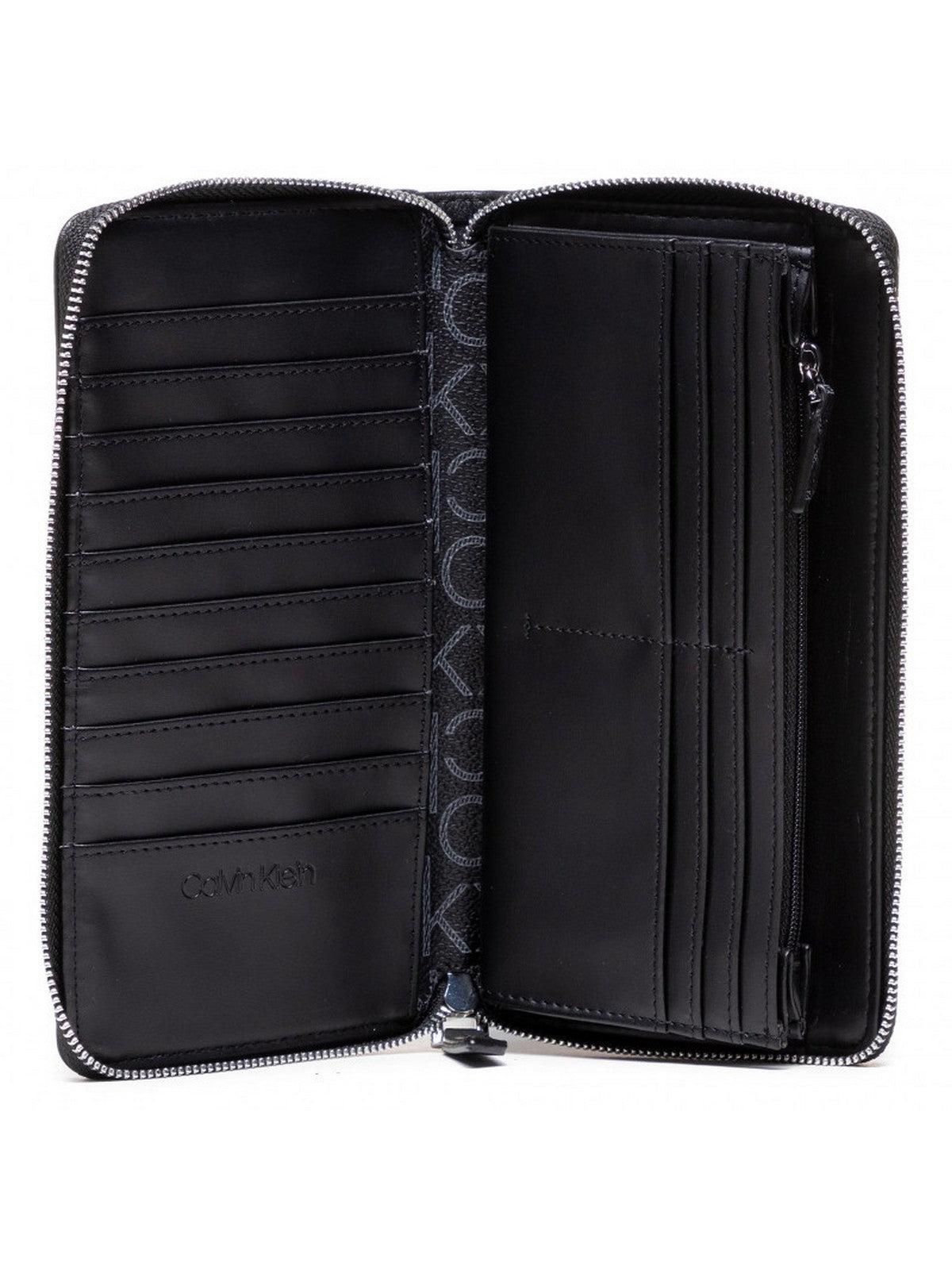 Portafoglio CALVIN KLEIN in similpelle. Logo in metallo sul fronte. Chiusura con zip. All'interno scomparti per carte business, documenti e banconote. Scomparto con zip per monete.