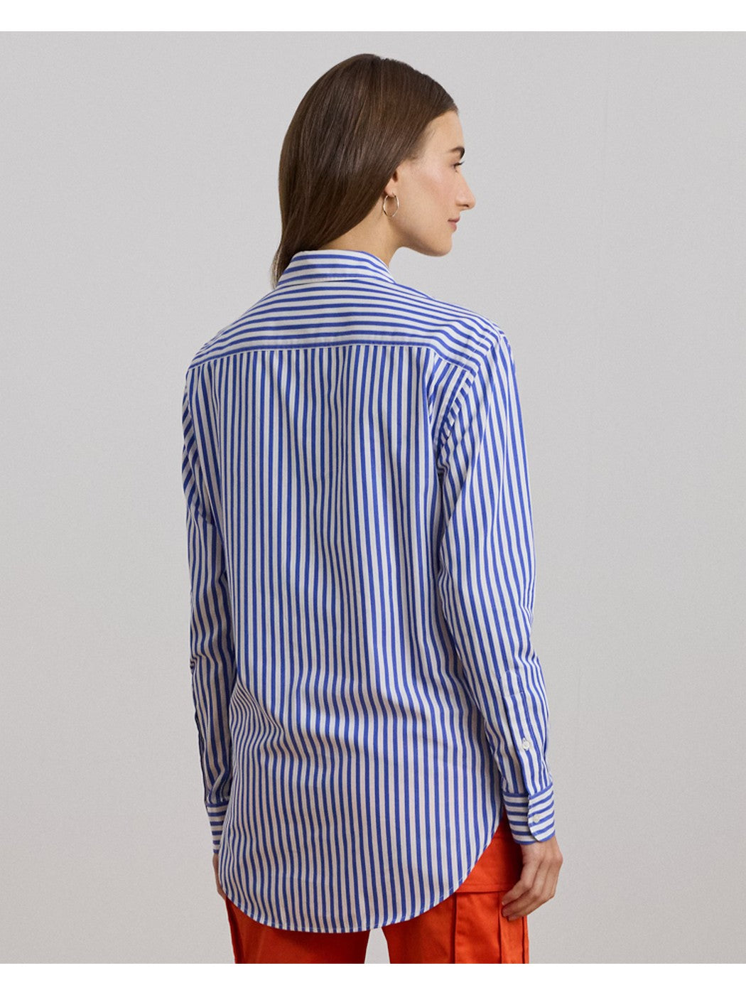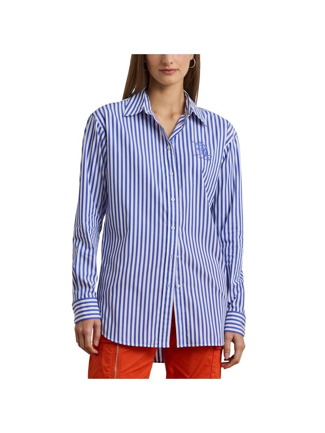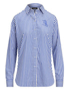 Sofisticato must have, questa leggera camicia dal taglio morbido è realizzata in fresco popeline di cotone tinto in filo con intramontabili righe per un look raffinato. Il modello è emblematicamente rifinito con un logo "LRL" oversize ricamato sul torace.