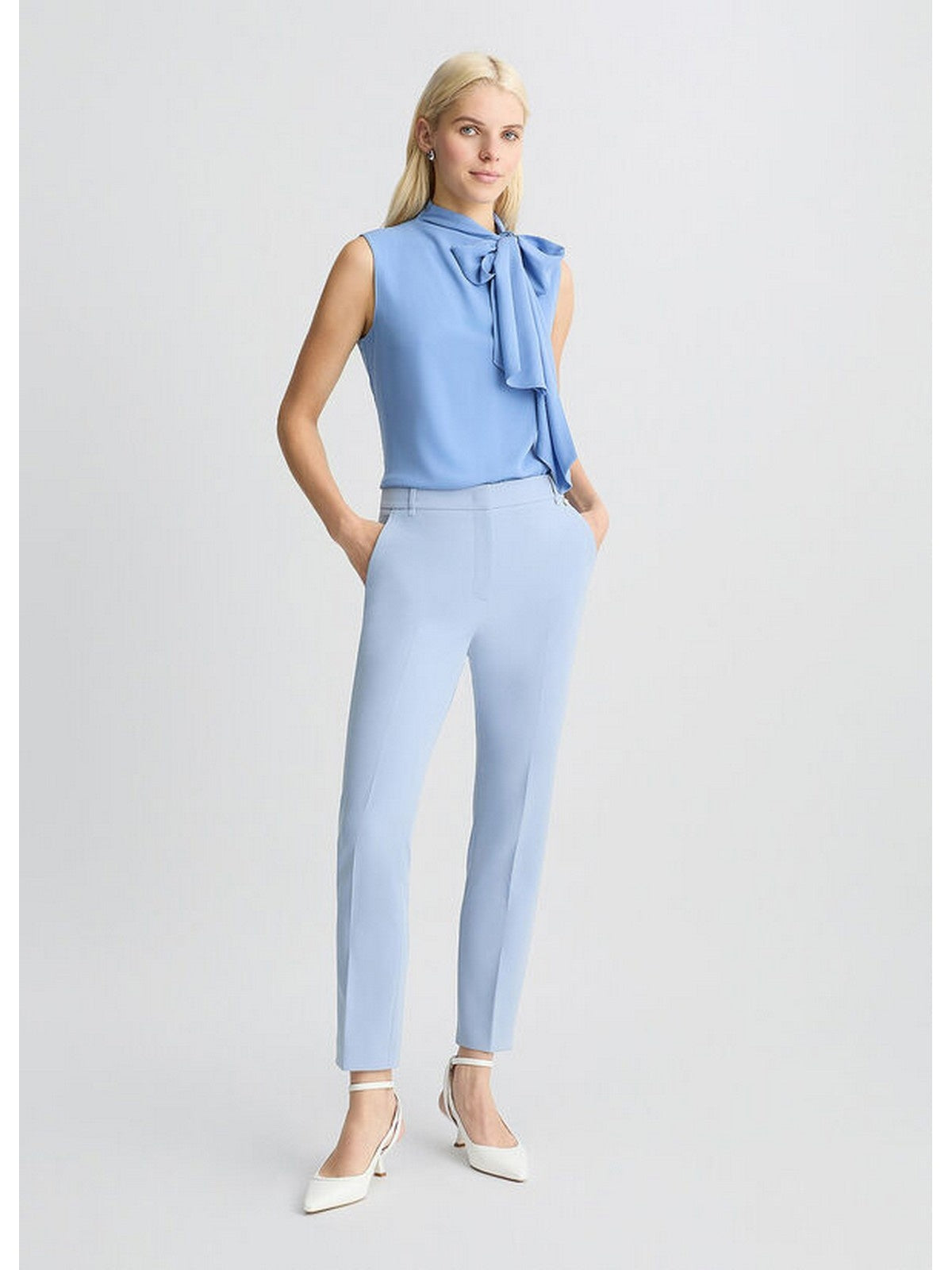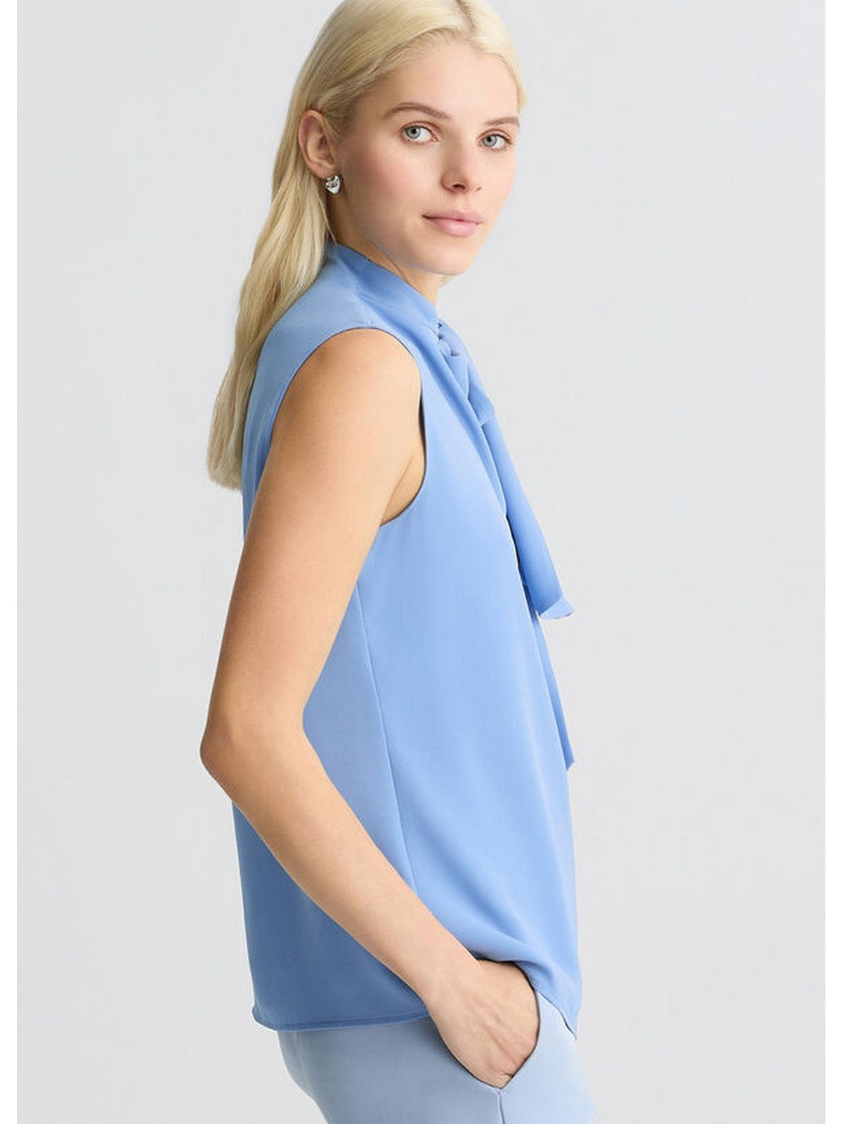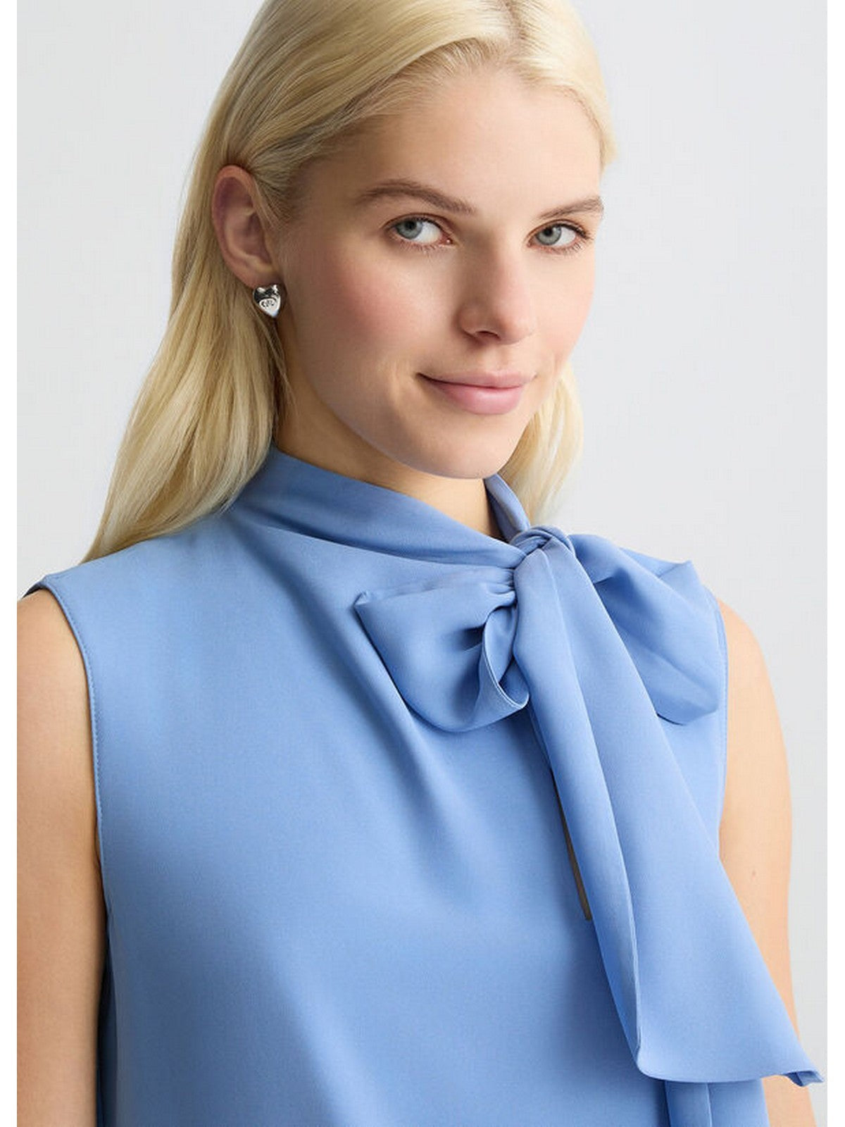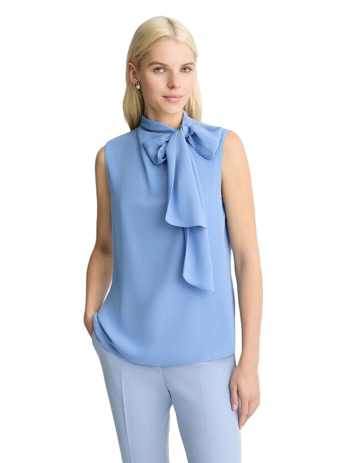 Aggiungi una nota sofisticata ai tuoi look più formali con questo elegante top in georgette. Il modello scivola fluido sulla tua collezione di gonne o pantaloni sartoriali, arricchito da un vezzoso fiocco in tono colore. Scegli il colore più adatto a te e dai voce al tuo glam!