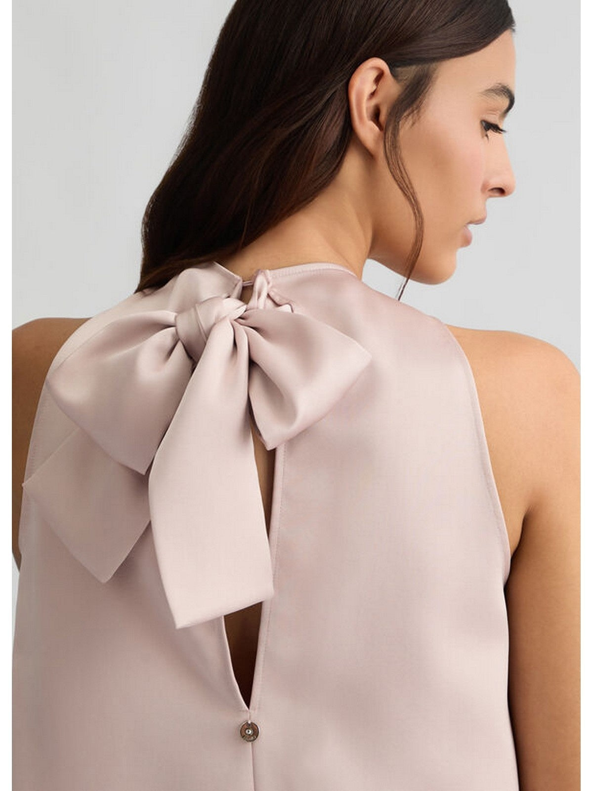 Must-have del guardaroba da sera, questo top conquista con un'elegante fiocco in tono colore. Realizzato in raso, scivola fluido sulla pelle ad ogni movimento regalando piccoli riflessi di luce. Indossalo su gonne coordinate o su pantaloni d'ispirazione sartoriale per completare i tuoi look.