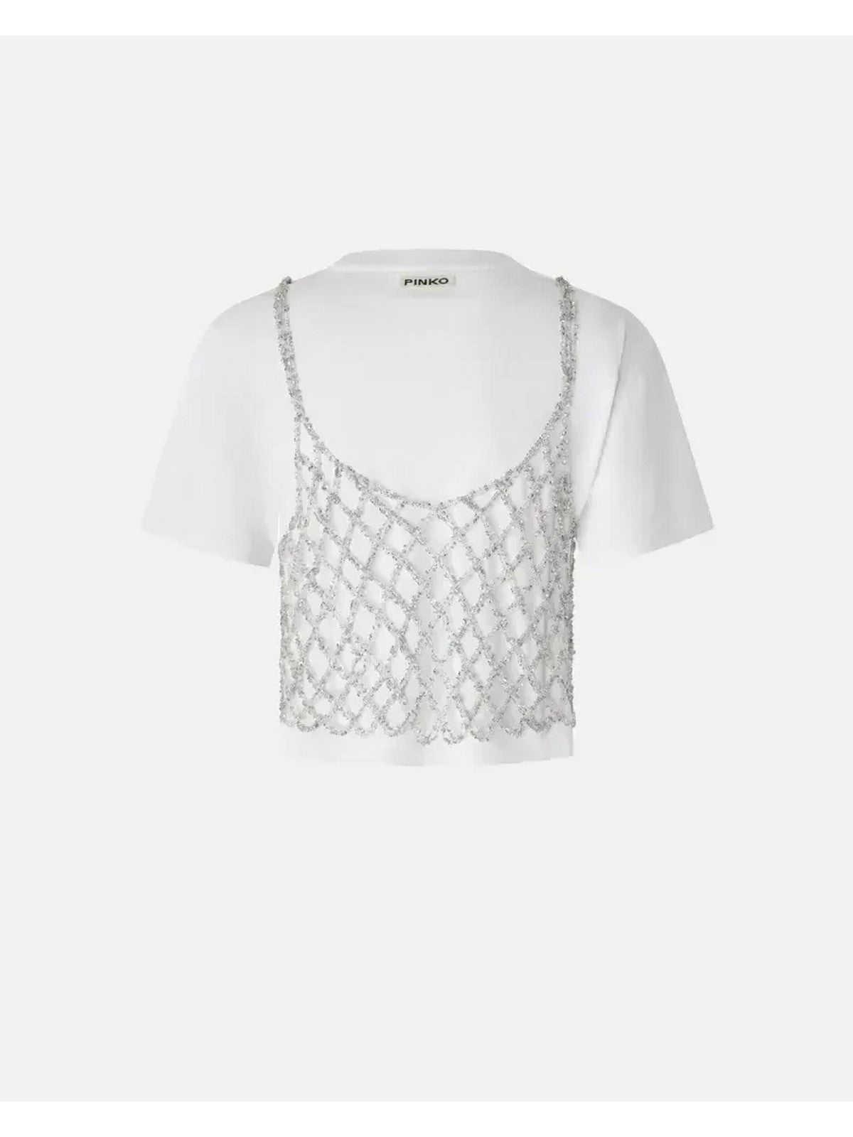 Canotte e top Donna Pinko - T-shirt con top mini paillettes abbinato - Bianco